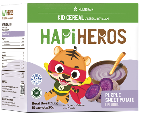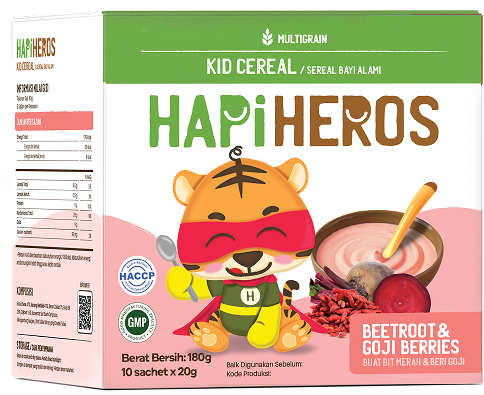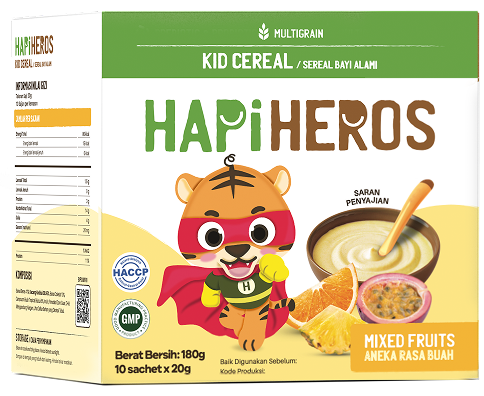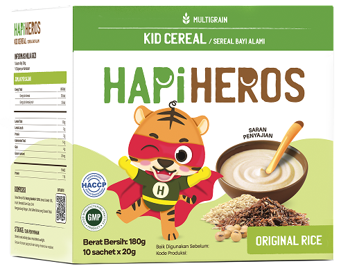 Setiap kotak HAPIHEROS® Natural Baby Cereal berisi 10 sachet, dengan masing-masing sachet seberat 20 gram, sehingga totalnya 200 gram per kotak.
