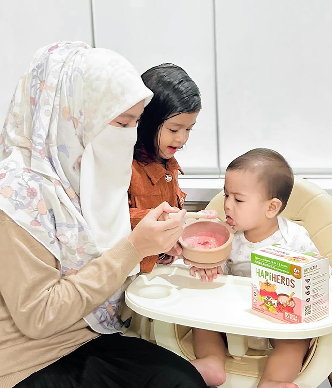 1st solid food utk Sayf, Rin pilih brand Hapiheros @hapifam_my. Rin dah try trial pack yg ada semua perisa Sayf suka semua flavour,, Alhamdulillah!
