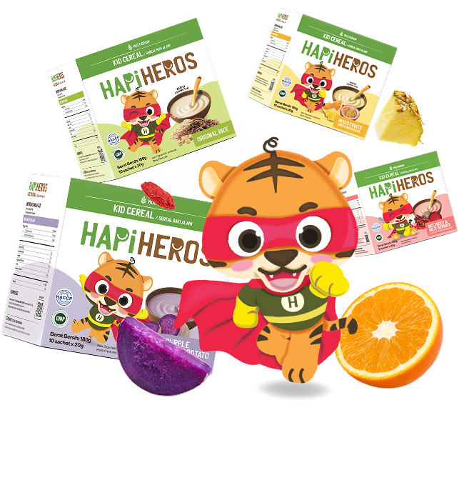 HAPIHEROS® Natural Baby Cereal tersedia dalam empat varian rasa unik khas Asia: